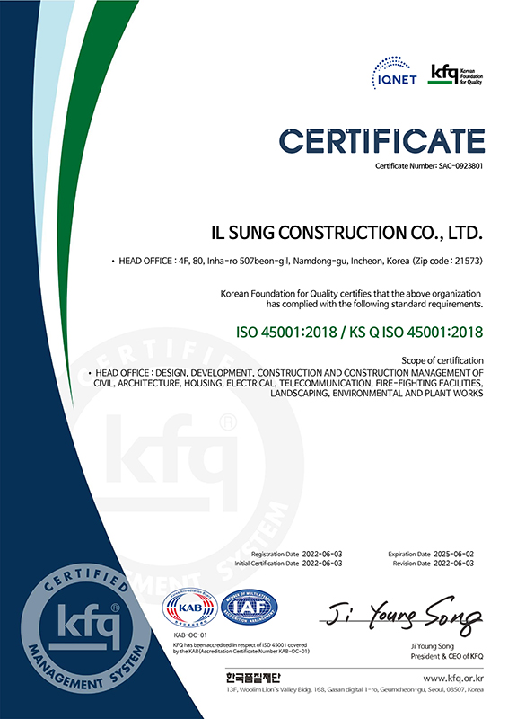 The safety management at Ilsung Construction Co., Ltd never stops, even for a second.